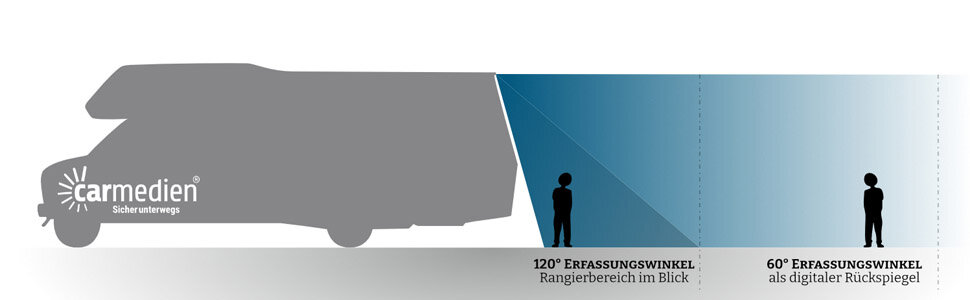 Doppel Rückfahrkamerasystem CM-GDKRFS3 mit großem 9“ TFT Monitor und einfacher Plug&Play Montage. Das System ist damit die perfekte Lösung für größere Fahrzeuge, denn Dank der Doppel-Rückfahrkamera haben Sie den Rangierbereich hinter dem Fahrzeug und auch den nachfolgenden Verkehr verzerrungsfrei im Blick. Passend dazu ist der Betrieb an 12V bis 24V möglich.